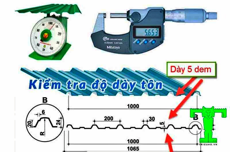 Do độ dày của tôn lợp được tính bằng mm do đó, khi mua hàng, các bạn có thể sử dụng thiết bị đo độ dày vật liệu là Palmer để so sánh độ dày của các tấm tôn. Từ đó chọn được sản phẩm chính hãng, chất lượng cao.